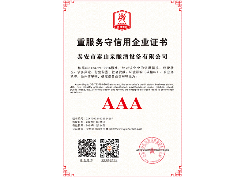 泰安市泰山泉釀酒設(shè)備有限公司,是一家專(zhuān)業(yè)從事釀酒設(shè)備機(jī)械化研發(fā)并集技術(shù)咨詢(xún),工程設(shè)計(jì),制造安裝,人員培訓(xùn)及售后服務(wù)為一體的綜合性企業(yè),本公司主要產(chǎn)品為:大曲清香、小曲清香、大曲醬香、大曲濃香等香型白酒機(jī)械化設(shè)備。 本公司與中國(guó)科學(xué)院自動(dòng)化研究所簽訂技術(shù)服務(wù)合同,引進(jìn)先進(jìn)技術(shù),研究生產(chǎn)全自動(dòng)化機(jī)械釀酒設(shè)備,由中國(guó)科學(xué)自動(dòng)化研究所的技術(shù)支持,打造最先進(jìn)的生產(chǎn)釀酒設(shè)備,公司有信心打造全國(guó)最先進(jìn)白酒...